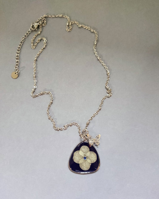 Collana VIRIDIA con fiore "Ortensia bianca"
